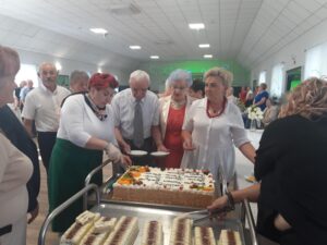 Spotkanie z okazji „Dnia Matki”przebiegło w bardzo miłej atmosferze ,akcent taneczny Miłosz i Ania utytuowani zawodnicy w tańcu sportowym.Zaproszeni goście radni gminni i powiatowi Pani sołtys i Pani kierownik GOPS.Tort lody od jubilatów i