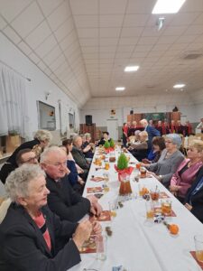 Święta Bożego Narodzenia to magiczny czas, dzisiaj mieliśmy „Wigilię u Seniorów” jak zwykle licznie przybyli nasi członkowie i goście. Była choinka, prezenty dzielenie się opłatkiem życzenia i błogosławieństwo księdza proboszcza Przemysława Patkowskiego, życzenia Pani posłanki Alicji Łuczak, radnych gminy Żelazków, sołtyski Żelazkowa i przewodniczącej Seniorów Aglomeracji Pani Małgorzaty Kraszkiewicz w magię świąt wprowadził nas zespół śpiewaczy Ale Babki z Kościelca wykonując kolędy i pieśni. No i oczywiście potrawy wigilijne oraz ciasta od solenizantek.